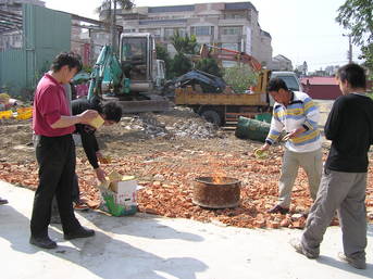 Then they went out in the courtyard to burn some (false) money for souls of the ancestors