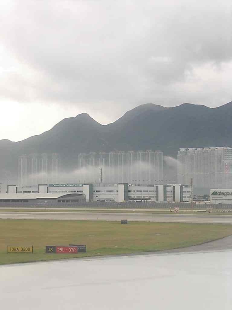 Hong Kong airport. Buildings piling up up up, like ghosts here