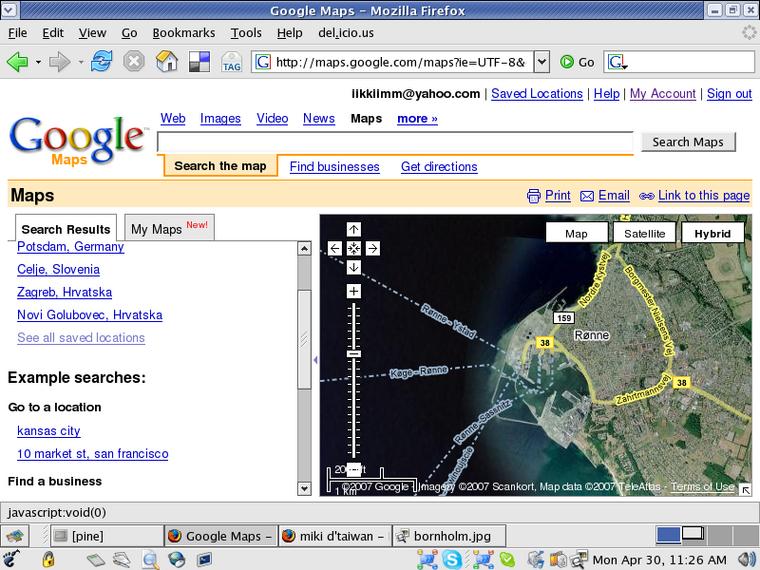 Next to see was Bornholm and Ronne, nicely visible here. Thanks to googlemaps and peculiar multi-molo structure, I can be pretty sure it is really Ronne.